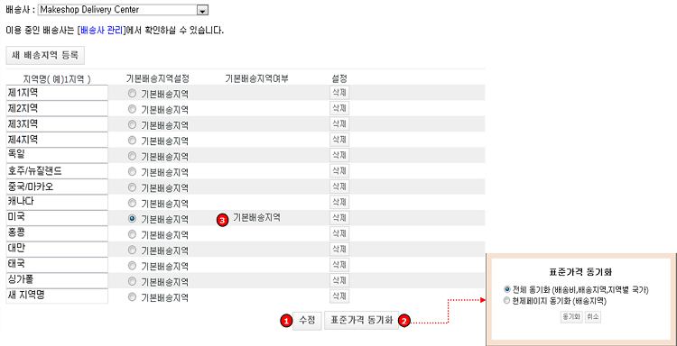 - 설정한 기본배송지역을 기준으로 언어별 배송비가 책정되오니, 표준가격 동기화 후 수정/삭제 하지 마시기 바랍니다.