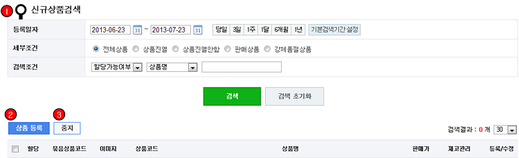 - 신규상품 등록 창으로 연결됩니다. (하단 상세설명)