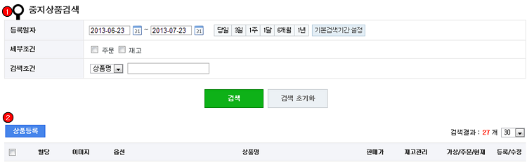 ① 중지 상품 검색 :
