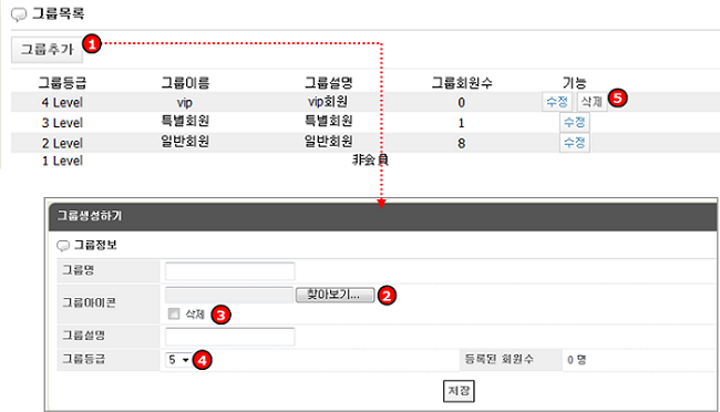 - 1~10까지의 총 10개의 그룹등급 생성 가능하며, 그룹을 추가할 때마다 순차적으로 지정 됩니다.